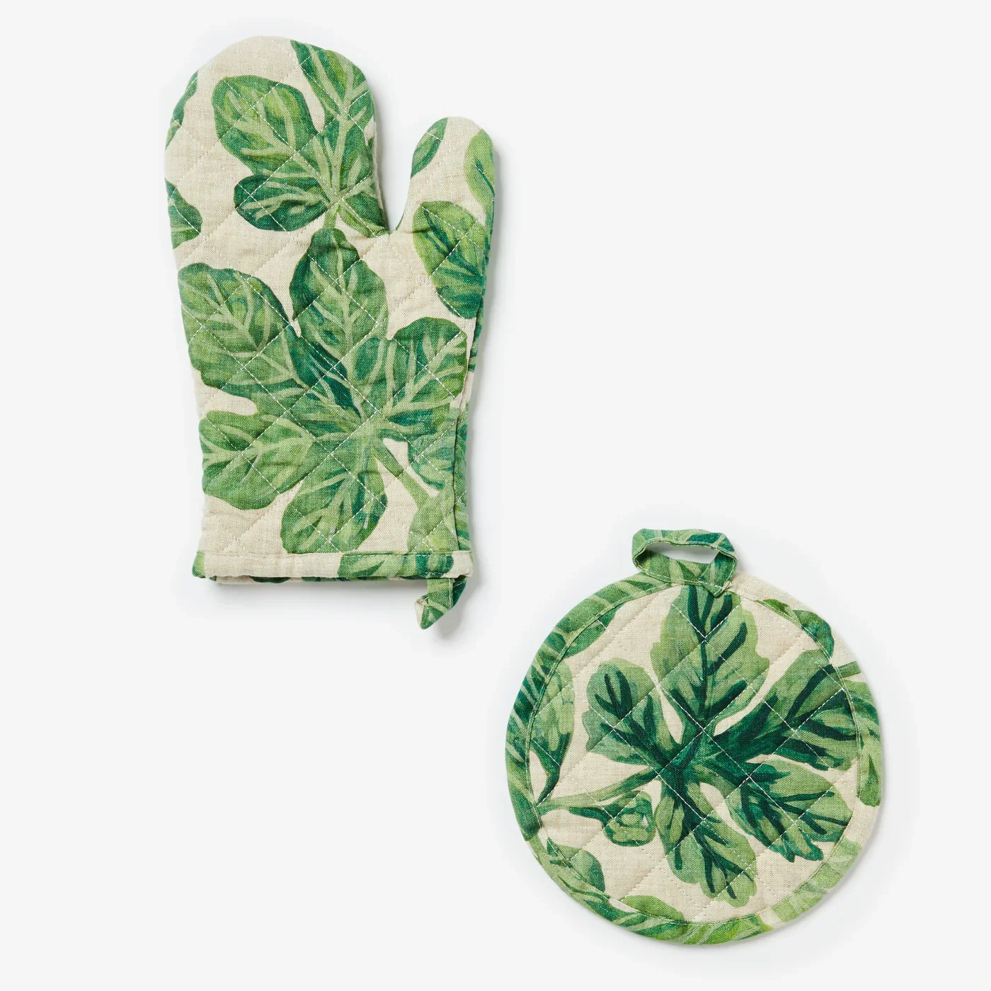 Our round pot holders are printed on soft, durable linen with a quilted finish and sold individually. Pair them with our linen oven mitts in complementary patterns and colours.