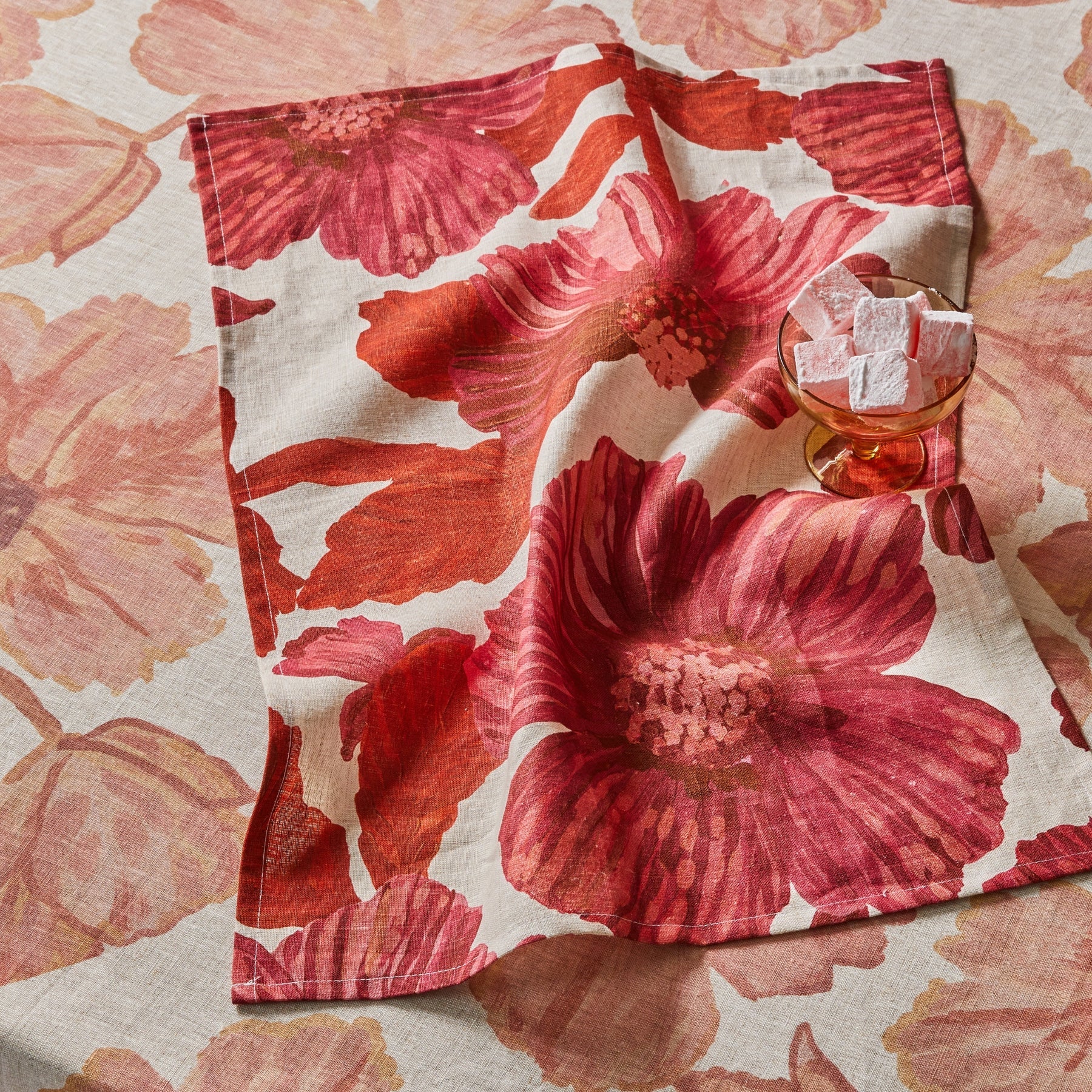 Liven up your kitchen with the bold beauty of the Leon Cerise Tea Towel, a striking interpretation of floral artistry in rich, dramatic hues. Featuring an oversized hand painted botanical design in vibrant cerise, this red floral tea towel makes opulent, nature-inspired statement. Both practical and decorative, it adds instant warmth and sophistication to your space, whether hanging from your oven handle or draped over your island bench.