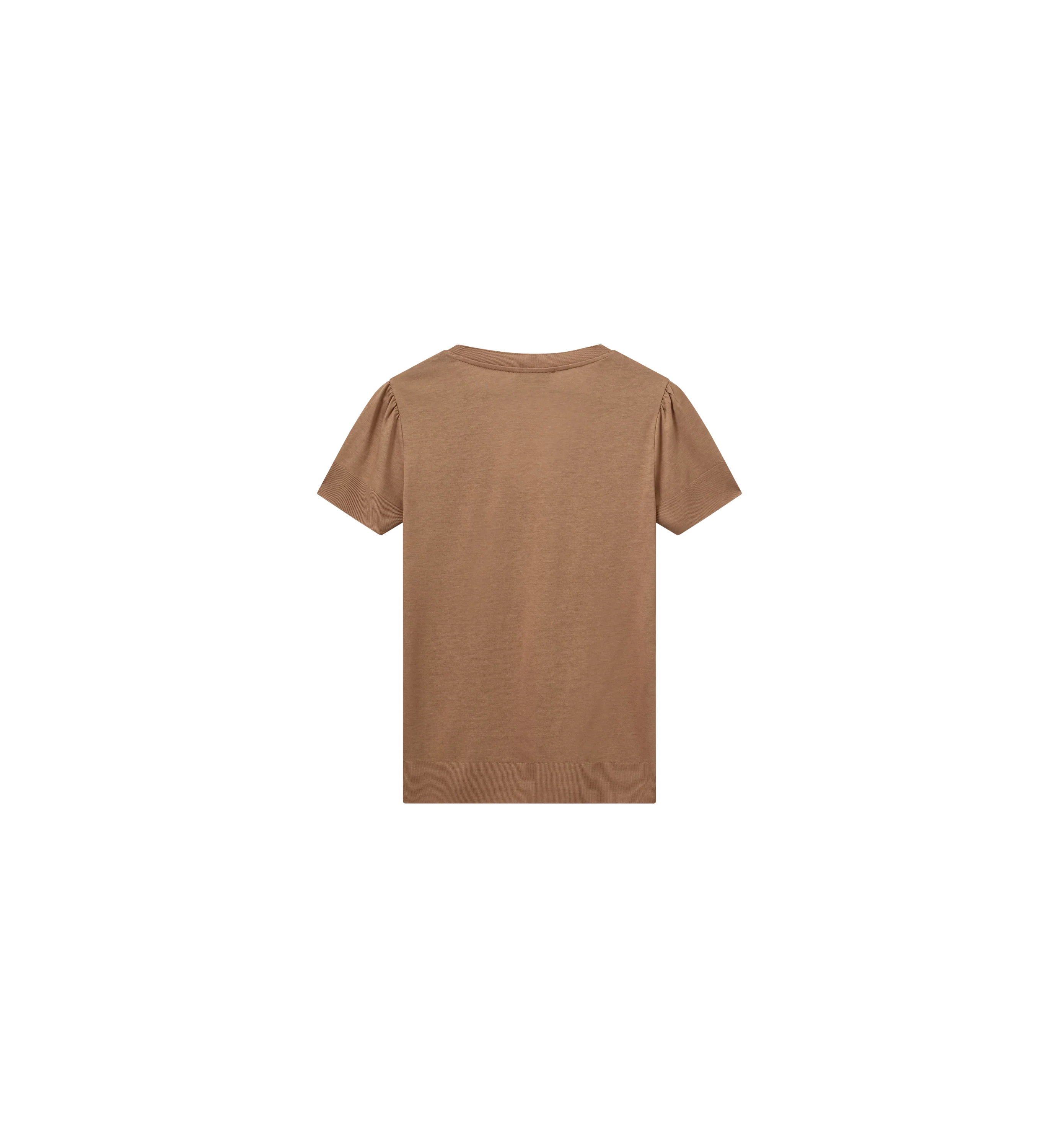 Embrace timeless elegance with this tee, designed in a slightly fitted silhouette that accentuates your form. The v-neckline is both flattering and refined, complemented by the delicate pleats at the shoulders. Finished with rib details at the neckline, cuffs, and hem, this versatile piece pairs effortlessly with jeans or shorts for a chic and comfortable ensemble.